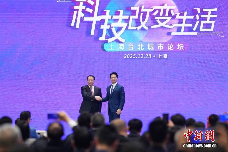 图为龚正(左)取蒋万安握手合影。中新社记者 李志华 摄